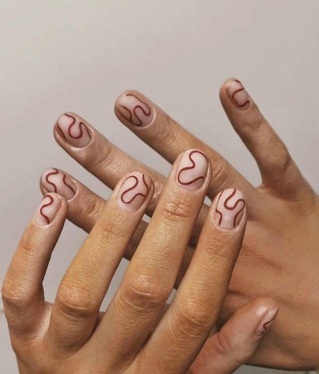Цей мінімалістичний манікюр із натуральною колірною основою та лабіринтними малюнками – відмінний варіант для тих, хто хоче крутий манікюр, але без зайвого пафосу.