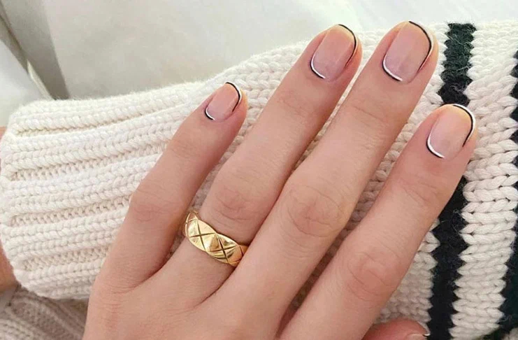 Якщо ви хочете стриманий, але незвичайний дизайн, вам потрібен манікюр, подібний до цього. Декілька чорних і білих ліній на натуральному нігті перетворюють нудний манікюр на стильний, який також дуже легко зробити вдома.