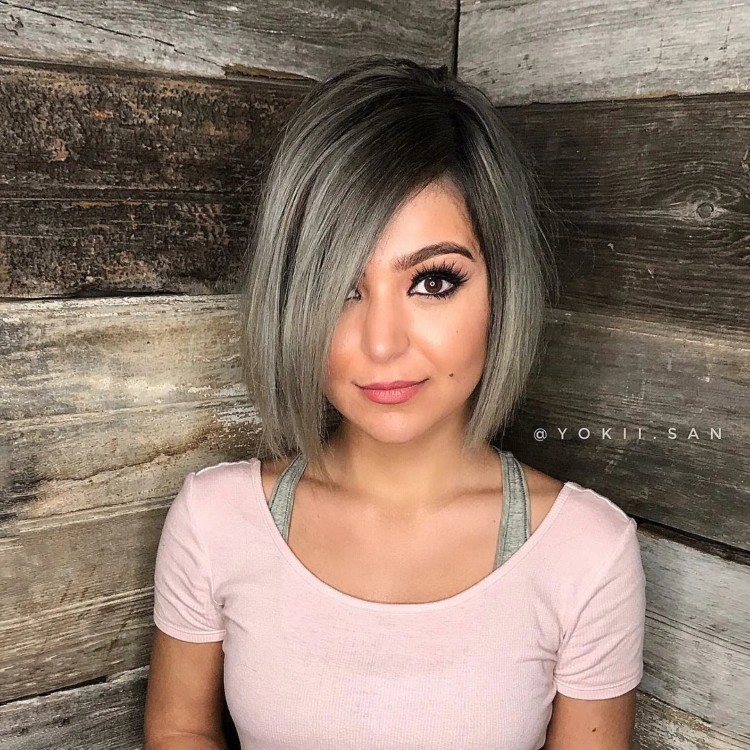 Всупереч поширеній думці, перевернутий боб не повинен слідувати певним шаблонам. Асиметричний підхід до класичного стилю – ідеальний варіант: коротке волосся з одного боку і довше з іншого. Можна пофарбувати пасма в зухвалий неприродний відтінок, щоб виділитися з натовпу.