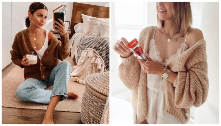 Базові джинси вільного крою для домашнього і затишного аутфіта можна комбінувати з в’язаним топом, а також оверсайз кардиганом.