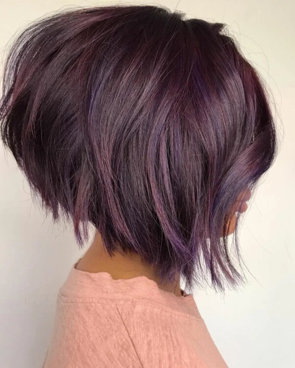 Ось красиво пофарбована зачіска боб з багатошаровою і об’ємною потилицею.