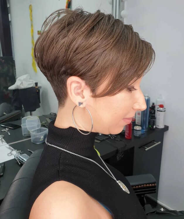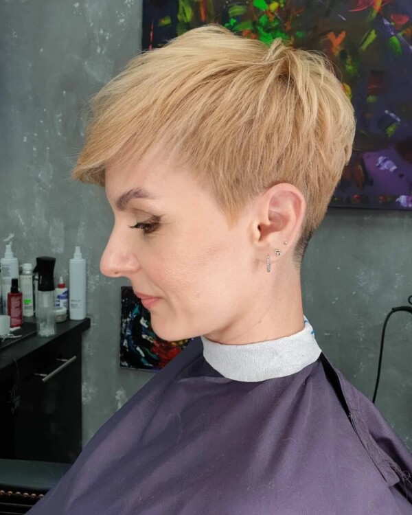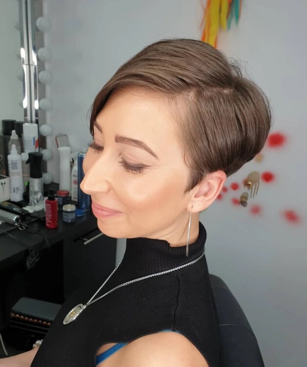 Пікс – це не тільки стильна форма короткої стрижки, але і справжній еліксир молодості. Незважаючи на короткку, а іноді поголену потилицю жінка все одно отримує дуже ніжний і кокетливий образ модниці. Не варто переживати, що Пікс відкриває шию і велику частину обличчя, стрижка, завдяки формі, візуально відведе погляд від проблемних ділянок.
