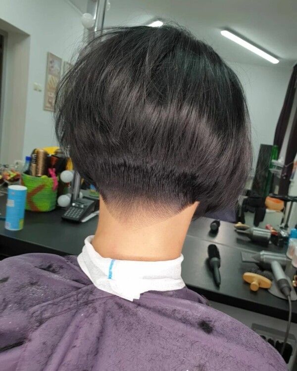 Стрижка об’ємний боб – це кращий вибір для жінок старше 40 років. Особливість і головною характерною рисою зачіски є об’ємна верхівка. Саме завдяки увазі ззаду жінка отримує особливий шарм для свого образу. Коротка потилиця йде в повну протилежність подовженим пасмам спереду, за допомогою яких дама і створює кокетливий зовнішній вигляд.