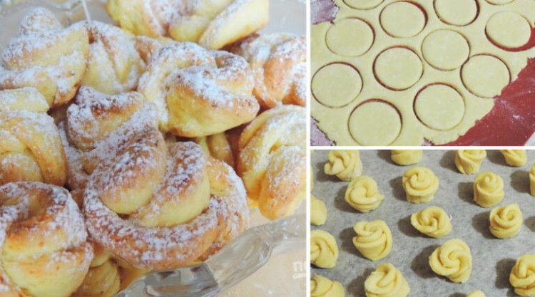 Робимо дві трояндочки і викладаємо на деко, застелене пергаментним папером.