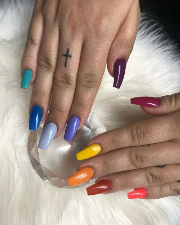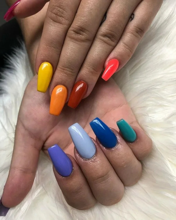 Райдужні нігті – ще один nail-тренд, який в 50 робити не рекомендується. Такий манікюр демонстрували на показі United Colors of Benetton. Кожен пальчик моделі пофарбували в різний колір. В результаті вийшла дитяча розмальовка, яку дорослій жінці малювати непристойно.