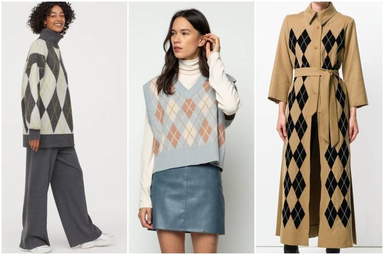 Аргайл, або ромби – це той самий принт, який доречно виглядає в діловому стилі, навіть якщо у вас на роботі досить строгий дрес-код. Аргайл виглядає стримано, добре поєднується з діловими костюмами. Додатковий шар у вигляді такої жилетки, наприклад, буде зігрівати вас в холодний сезон. А якщо дрес-код дозволяє, то можна вибрати і джемпер. В іншому, такий принт зараз в моді, так що він може виявитися на будь-якому виробі, навіть на верхньому одязі – як плащ на фото вище.