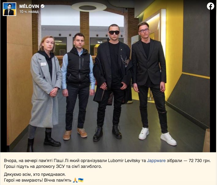 “Герої не вмирають! Вічна пам’ять” – написав у фейсбуці український співак про загиблого від рук російських окупантів Павла Лі.