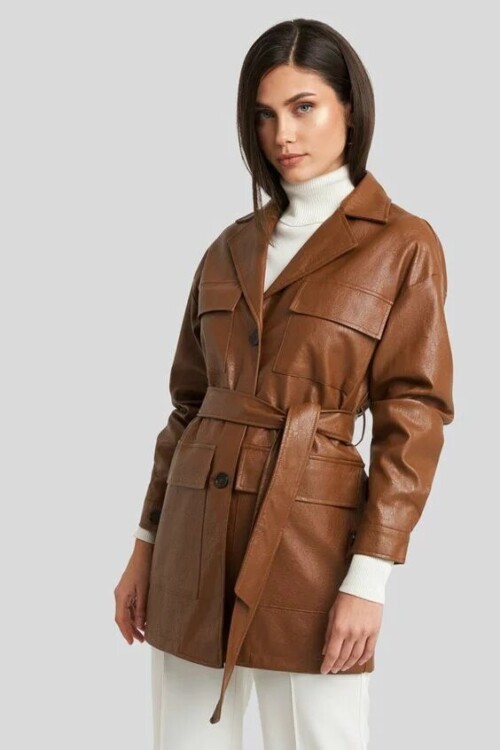 Шкіряна куртка-піджак благородного коричневого кольору з поясом і об’ємними кишенями – це нове віяння сучасної моди, яке надали нашій увазі відомі кутюр’є усього світу.