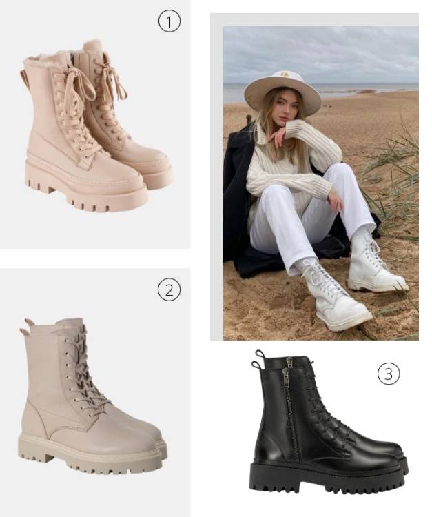 Вибирайте пару на високій підошві – така виглядає дорожче і ефектніше за тонку. Я рекомендую високі шкіряні моделі, що облягають щиколотку, адже це база, яка підійде до будь-якого вашого одягу. Якщо хочете трендові черевики – беріть із підошвою контрастного кольору.