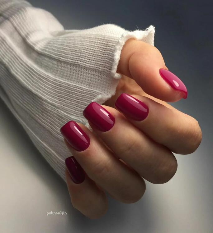 Звичайно ж, ми не могли не згадати насичений бордовий тон, який вражає своєю глибиною і красою. Бордовий манікюр – це чудове рішення для жінок, які хочуть зробити дизайн більш дорогим. Можна зробити однотонний манікюр, можна доповнити його френчем. А можна піти ва-банк і використовувати в дизайні золоті мотиви.