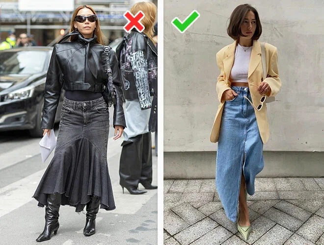 Спідниця може бути дуже жіночною, якщо виконана з м’якої тканини. Джинсовий варіант створює бабусин образ навіть у міксі із супертрендовими речами.