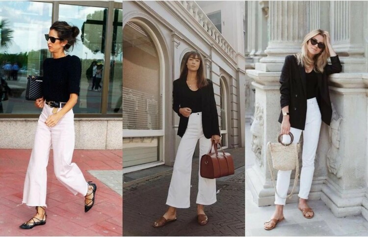 Чорно-білі образи для офісного гардероба – це стандартна класика. Але можна спробувати їх урізноманітнити, помінявши кольори місцями. Тобто вниз ми надягаємо білі штани, джинси або спідницю, а наверх – будь-який чорний топ, який добре поєднується з обраним низом. Строгість колірної гами дотримана, але комплект вже виглядає набагато цікавіше.