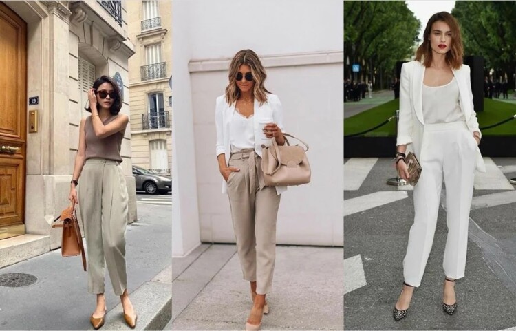 Вибирайте легкі вільні штани в нейтральних природних відтінках – хакі, пісочний, молочний, м’ятний – і спробуйте поєднувати їх зі своїми футболками, топами і піджаками. Із взуття до такого комплекту можна вибирати будь-які моделі в білій, коричневій або бежевій кольоровій гамі.