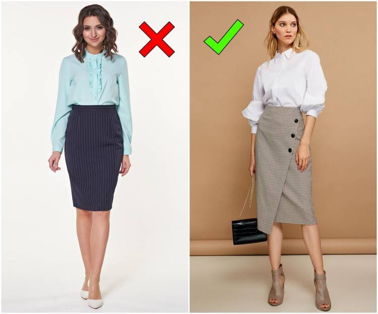 Офісна спідниця-олівець за останні років 5 теж помітно змінилася. Довжина до середини коліна, яку ми носили раніше, сьогодні вже не актуальна: якщо придивитися, вона сильно порушує пропорції тіла, а ноги через неї можуть здаватися повніше. Вибирайте спідниці, які хоча б трохи прикривають коліна. Вони і виглядають гармонійніше, і на роботі доречні.