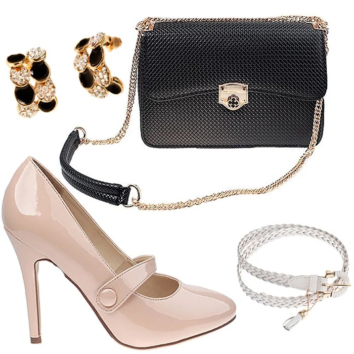 Цей же прийом працює і при підборі аксесуарів. Поєднання лакової сумки гармонує з туфельками з гладкої шкіри. Такий образ буде виглядати значно гарніше, ніж образ, де туфлі та сумка будуть з одного матеріалу.