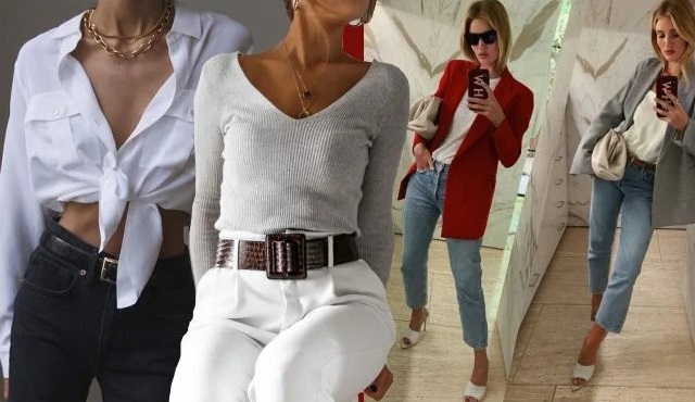 Удосконалити свої базові штани і додати їм сучасності допоможе шкіряний ремінь. Щоб ноги виглядали довгими, стрункими і привабливими стилісти радять підвертати штани, щоб щиколотки залишалися відкритими.