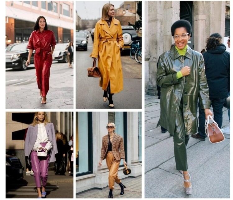 Будь-який одяг з кольорової шкіри (натуральної або штучної) буде хітом майбутньої осені. Це можуть бути брюки, сорочки, комбінезони, сукні, а також верхній одяг – куртки, тренчі. Щоб образ з речами зі шкіри не виглядав вульгарно, одяг не повинен сидіти в обтяжку.