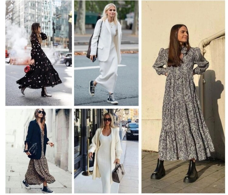“Лялькові” наряди йдуть далеко не всім, так що якщо у вас жіночна фігура і округлі форми, придивіться до трендових суконь довжиною максі. До речі, вони ідеальні для прохолодної погоди: годяться і для прогулянки в парку, і походу в ресторан, і візиту в гості. Головне – обіграти відповідними аксесуарами.
