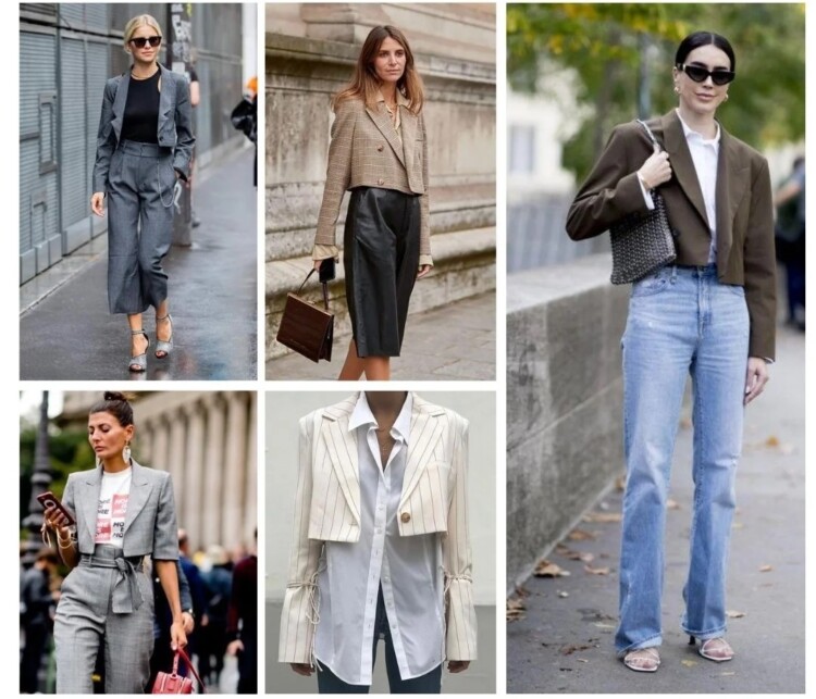 Ідеальне рішення для фігури з великими стегнами – такий жакет відмінно балансує силует. Тут важливо пам’ятати про те, що посадка у такого жакета обов’язково повинна бути вільною, не в обтяжку. По суті, це нібито повноцінний піджак, який просто обрізали по лінії талії.