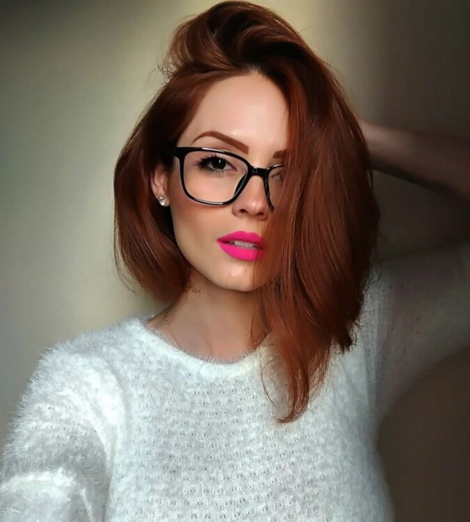 Дана зачіска помітно пом’якшить всі грубі риси обличчя. Крім цього, чубчик на бік буде привертати увагу на себе, тим самим приховуючи непропорційні риси обличчя. Каре з косим чубчиком робить образ дівчини неймовірно легким і грайливим.