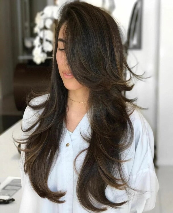 Багатошарові стрижки на тонке довге волосся для дам після 30