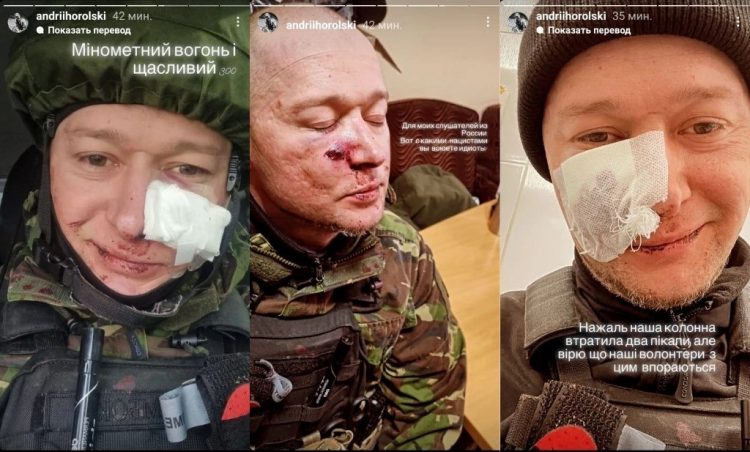 Під третім знімком Андрій Хливнюк повідомив, що з їхньої колони дуже постраждало дві автівки. Проте, музикант вірить у силу волонтерів і впевнений, що їм вдасться з цим справитися.