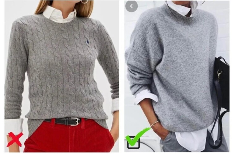 Спробуйте приміряти джемпер на розмір більше: відразу помітите різницю в посадці і в сприйнятті фігури.
