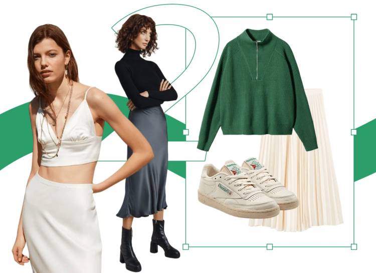 Дрібне плісування часто вибирають, щоб виглядати романтично. Але це можна зробити за допомогою актуальнішої атласної спідниці міді. Базова модель добре поєднується з будь-яким верхом: блузкою, корсетом, футболкою, топом, жакетом. Взуття також може бути різним – від кросівок до туфель на шпильці.