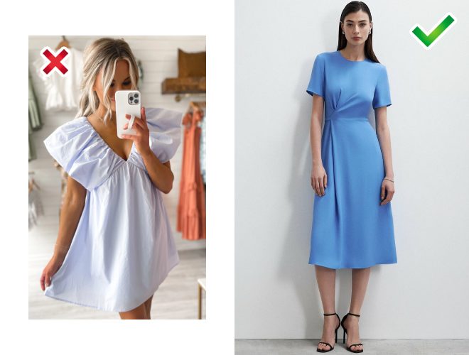 Сукні у стилі baby doll залиште дівчаткам-підліткам. Так, виглядають вони дуже привабливо і кокетливо, але будуть недоречні для жінок після 30 років. Подумайте самі, яке враження ви справите на оточуючих, якщо з’явитеся в короткій, приталені сукні з пишною спідницею? Та й підходить ця модель не всім, так що геть модні експерименти!