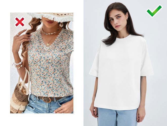 Скільки не говори про те, що футболки з химерними принтами виглядають дивно і безглуздо, жінки вперто продовжують їх купувати. Не має значення, яка саме модель вам сподобалася: з мультяшним героєм, великим квітковим малюнком або візерунком у горох — їй не місце в сучасному гардеробі.