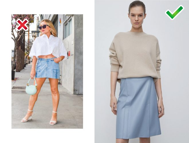 Ключовим трендом останніх сезонів стали спідниці та сукні довжини міні. Звісно, приміряти їх захотілося всім! Однак після 30 років із довжиною міні потрібно бути напоготові. Це не означає, що варто повністю відмовлятися від коротких суконь і спідниць — просто нехай їхня довжина буде трохи вищою за коліна, а силует — стриманим: прямим або А-подібним.