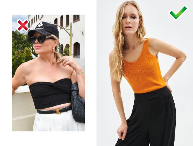 Ще один гарячий тренд, який найкраще залишити молоді. Кроп-топи створені для того, щоб привертати увагу до тонкої талії та підтягнутого живота. І навіть якщо ви маєте чим похвалитися, раджу тричі подумати, перш ніж додавати цю деталь гардероба у свої образи.