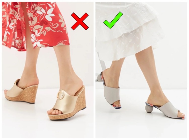 Мюлі – один з хітів літнього жіночого гардероба вже який рік поспіль. Важливо відрізняти актуальні моделі від застарілих, інакше вийде не трендовий образ, а наряд з минулого. Категоричне “ні” танкетці з пробки. Ось, що точно відсилає нас на 10 років назад і зараз не модно. А ось невеликі стійкі фігурні підбори будуть виглядати дуже стильно. Квадратний мис також дуже сучасна деталь.