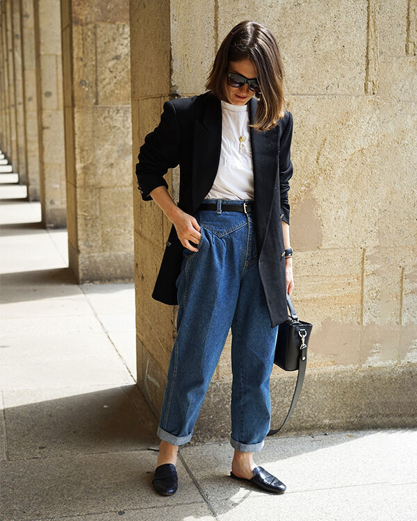 Приміряйте схожий за стилем, але універсальний варіант – момси, який “намалює” талію і підкреслить жіночні стегна. Вони будуть актуальними цілу вічність і впишуться навіть у діловий стиль у парі з костюмним жилетом та балетками з гострим мисом.