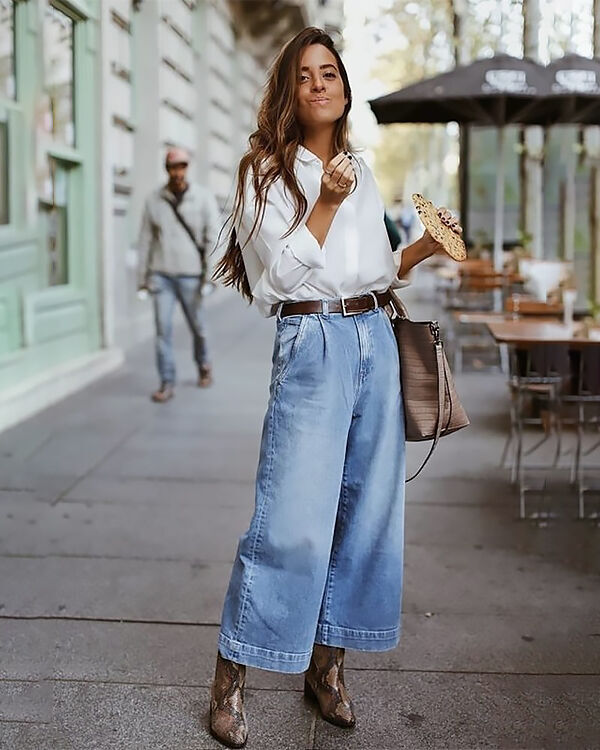 Восени 2023 року відмовляємося від підворотів та джинсів баггі. Робимо собі модельні ноги джинсами кльош та палаццо у міксі із взуттям на підборах чи платформі.
