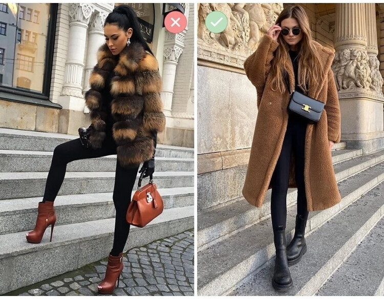 Носити натуральне хутро або штучне – ваш особистий вибір. Але дизайн верхнього одягу повинен бути сучасним незалежно від матеріалу. Проста шуба без прикрас і складного декору буде виглядати набагато дорожче і довше прослужить. Вибирайте шубу прямого крою або на запах з англійським коміром.