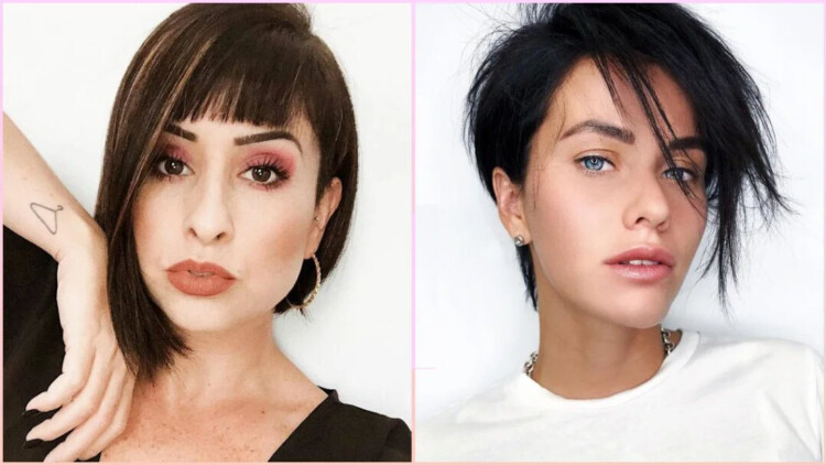 Коротка стрижка з асиметрією і з чубком для тонкого волосся. Видозмінити і додати в зачіску різну довжину можна в стрижці Пікс, Томбой, Боб, Каре і Паж. Для більш жіночного образу жінки залишають довгий чубок;