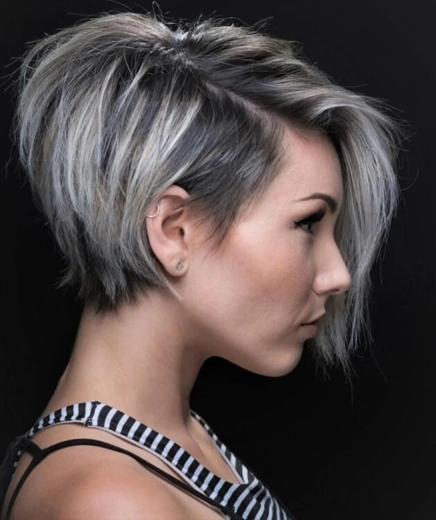 Досить коротка стрижка, вносить в образ дух бунтарства, підходить для активних жінок. За нею просто доглядати, вона не вимагає використання великої кількості укладань. Технологія стрижки спрямована на зрізанні пасом під різним кутом, за рахунок цього зачіска виходить дуже динамічною.