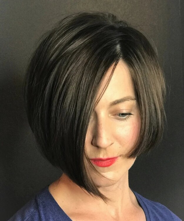 Моду на асиметричний боб ввели голлівудські знаменитості. Крім шикарного вигляду і чудового обсягу ця зачіска дуже практична і зручна. На приведення волосся в порядок витрачається мінімум часу, при цьому результат виходить приголомшливий. А локони різної довжини допомагають експериментувати з укладанням.