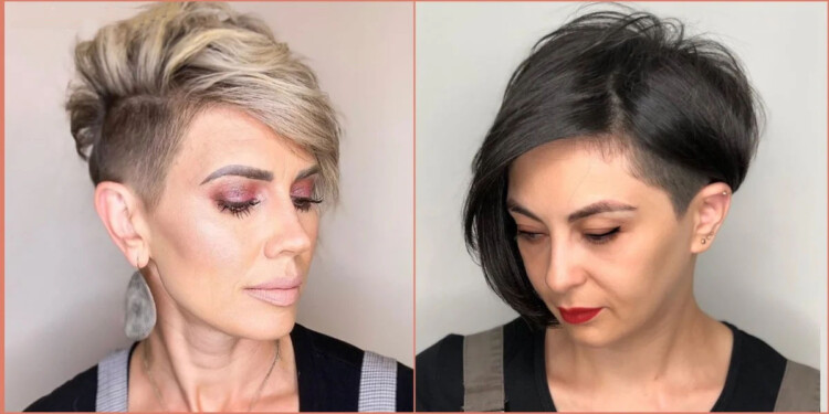 Виголені скроневі зони або зона потилиці надають свіжість і молодість віковим дамам. Жінки креативного настрою прикрашають поголені ділянки різними візерунками або геометрією. Втім, їх завжди можна прикрити довгими прядками волосся.