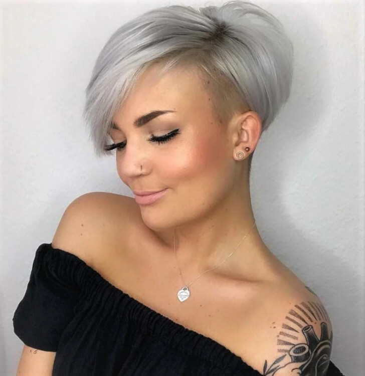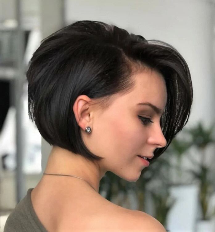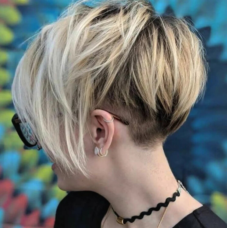 Асиметрія в тренді сезону, і вона буде чудово виглядати з цією стрижкою. Подовжені пасма біля обличчя і коротко стрижена потилиця дозволять внести в образ запал і свіжість. Асиметричний чубчик приховає недоліки і підкреслять індивідуальність жінки.