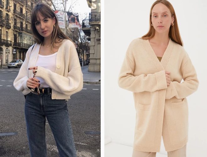 Кардиган можна носити будь-якої пори року: взимку як додатковий шар, а влітку в прохолодні вечори накидати на плечі. Він легко поєднується з джинсами, спідницями, сукнями та надає образу закінченого та розслабленого вигляду. Виберіть класичну оверсайз модель із щільної тканини. Головне, щоб кардиган не висів на вас, як ганчірочка, і не облягав тіло, наче друга шкіра.
