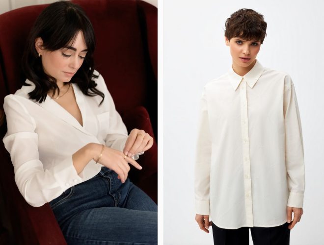 Біла сорочка – ще одна обов’язкова складова базового гардеробу. Вона також підходить для будь-якої ситуації та будь-якого образу – хіба що в спортзал її вдягнути не можна.