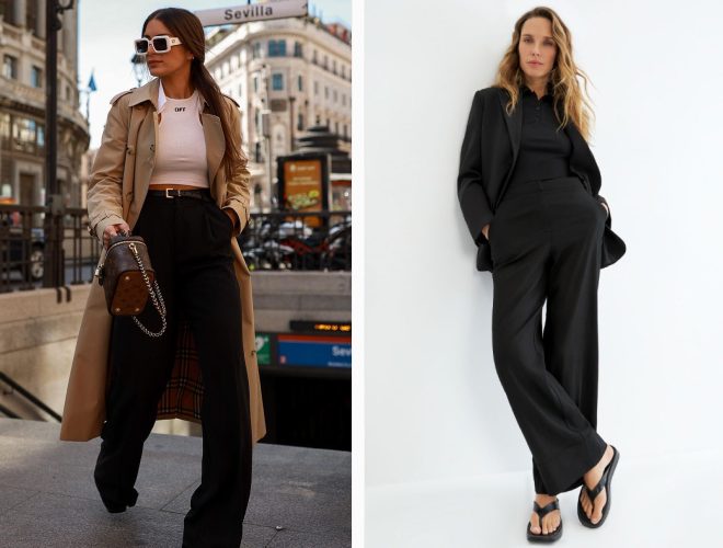 Штани також відносять до бази – вони виручать вас на будь-якому заході, особливо спонтанному. Базові моделі мають прямий або розкльошений від стегна крій, нейтральний відтінок. З ними легко зробити елегантний та суворий образ.