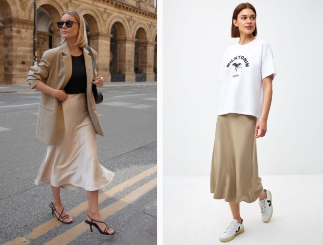 Якщо ми говоримо про базу, то вся увага на крій ніякої асиметрії. Спідниця на кожен день може бути А-силуету з шовку або шифону, олівцем з бавовни або прямої максі з розрізом з деніму.