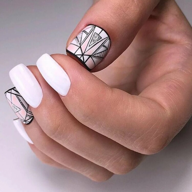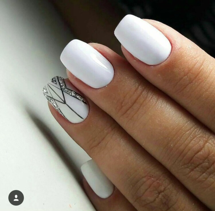 Також самодостатньо виглядає образ при виконанні геометрії. Тут можна спокійно додати ще кілька відтінків для різноманітності. Білий манікюр ідеально виглядає при матовому або глянсовому покритті. У нашій добірці ви знайдете масу цікавих варіантів, які захочеться втілити в реальність.