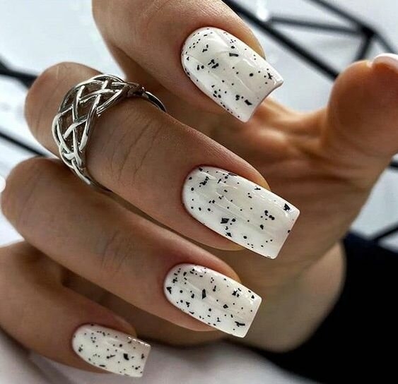 Цей дизайн тільки набирає популярність, але виглядає дуже стильно. На нігті малюються точки різного розміру, завдяки чому створюється ефект перепелиного яйця. Доповнити такий дизайн можна геометричним візерунком або лаком іншого відтінку.
