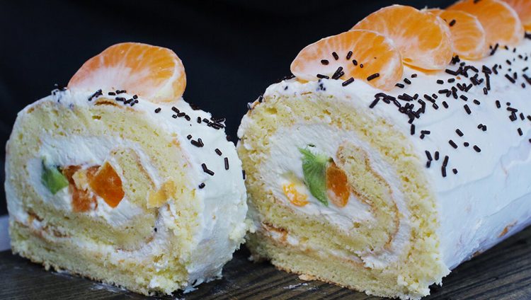 На Новий Рік без десерту просто не обійтись. Звичайно, можна купити все в магазині, але приємніше приготувати самим і порадувати рідних та гостей. А якщо ви не хочете возитися з тортом, або хочете ще що-небудь, то приготуємо бісквітний рулет з ніжним вершковим кремом і фруктами. Бісквітний рулет чудовий варіант замінити торт, а готується він набагато швидше та простіше.