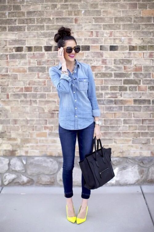 Джинсові сорочки виглядають дуже стильно, а головне вони дуже зручні і універсальні. Поєднуйте їх з джинсами і вийде стильний монохромний образ.