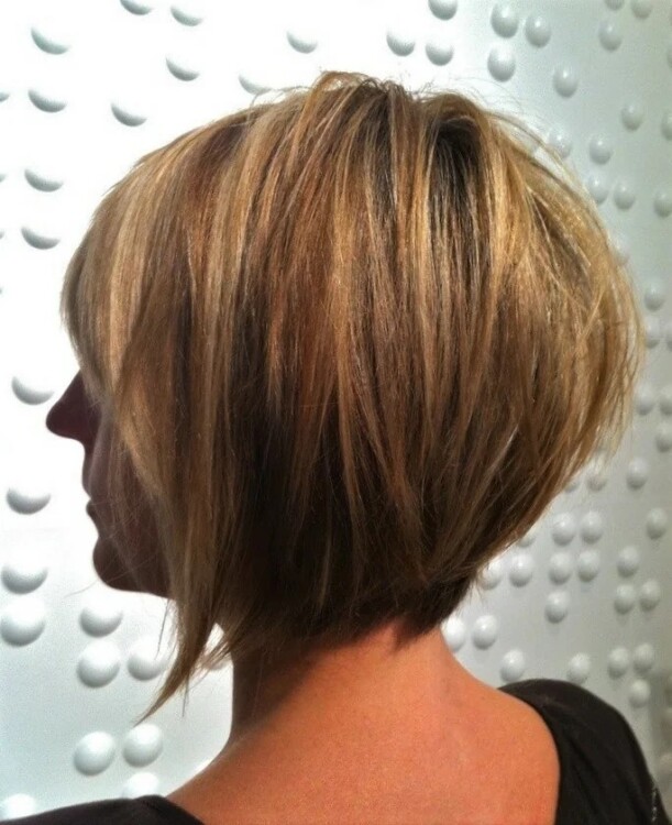 Багатошаровий боб-каре приховує високе чоло або широкі вилиці.